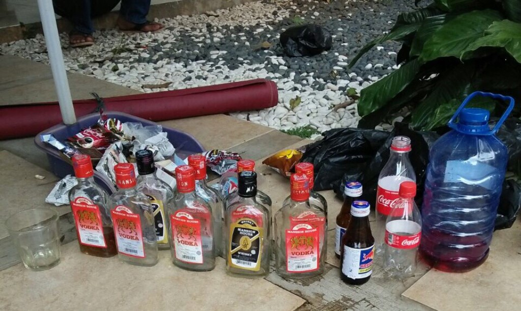 Di lokasi kejadian, polisi menyita sejumlah botol minuman berbagai merek yang telah kosong yakni 7 botol Vodka, 2 kosong Mension, 2 kosong minuman berenergi, 3 botol kosong minuman bersoda.