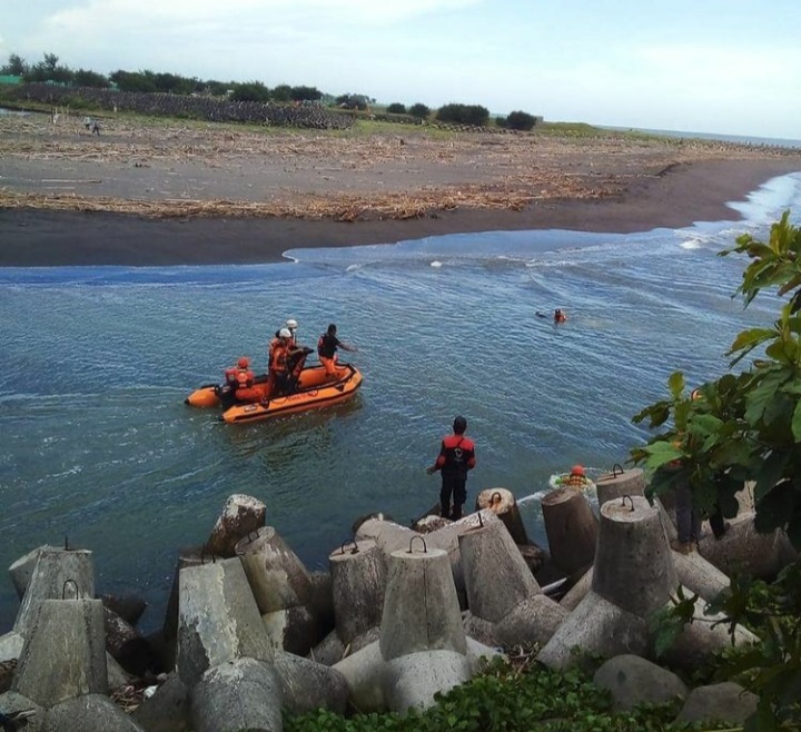JNS tenggelam setelah sempat terhempas ombak pantai selatan yang menjangkau muara sungai. Sementara, saudara JNS selamat untuk menepi.