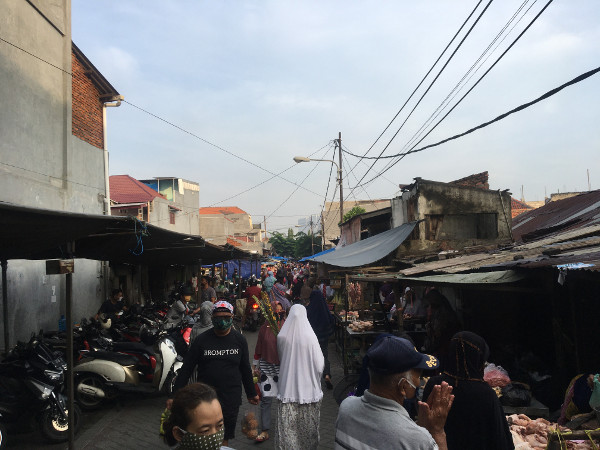 "Kadang ada petugas yang berjaga, tapi hanya berdiri saja di pintu masuk pasar. Tapi lebih sering tidak ada petugas," jelas Dewi.