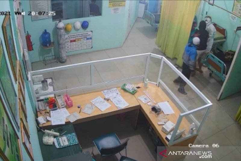 Seseorang yang diduga keluarga pasien tampak memukul perawat dengan tangan kosong. Mereka dilerai oleh orang lain dan pelaku berlalu pergi.
