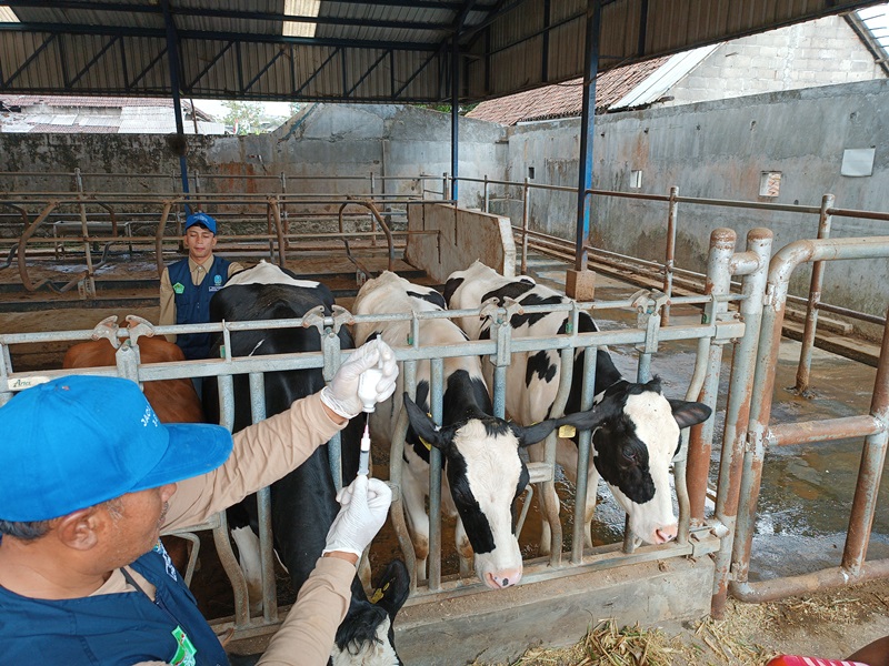 "Hingga saat ini vaksinasi pada sapi potong maupun sapi perah di Jatim masih terus berjalan. Meski status Jatim sudah menurun daerah wabah menjadi daerah tertular PMK dan zero case PMK, tapi vaksinasi terus digenjot. Hal ini dilakukan untuk memastikan sapi-sapi di Jatim benar-benar bebas dari virus PMK," ungkap Indyah Aryani saat memantau vaksinasi PMK massal di peternakan sapi perah di kawasan Pujon Kabupaten Malang.