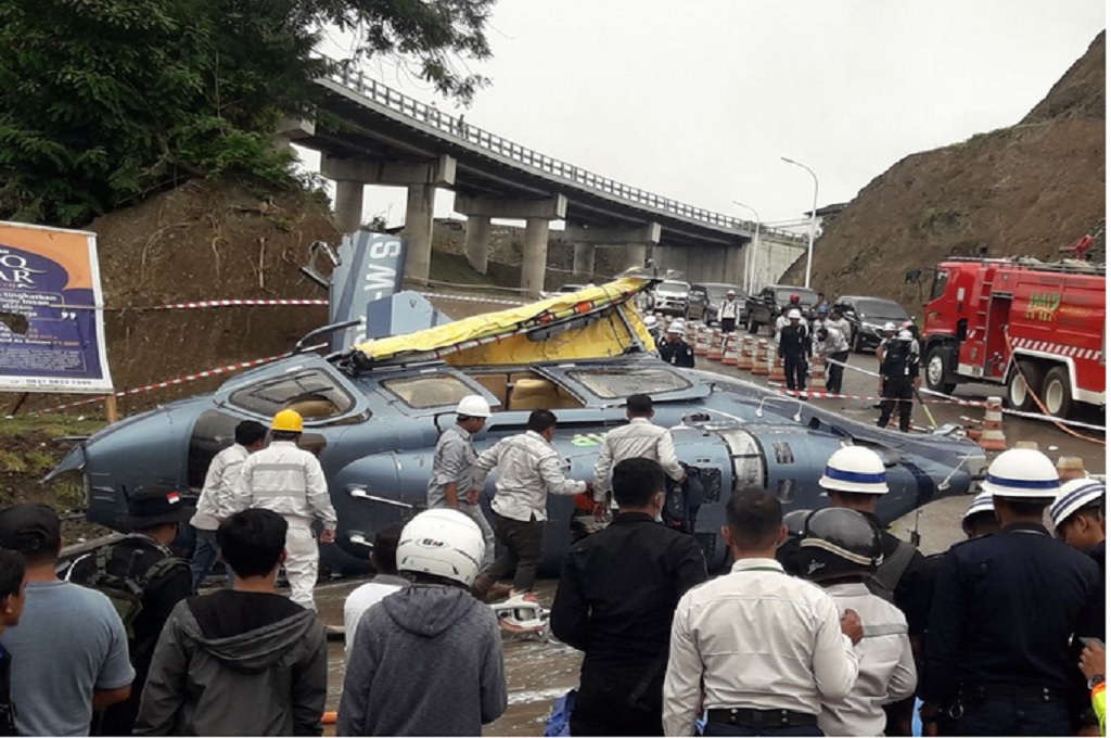Kejadian itu menewaskan satu orang karena tertimpa helikopter, Jumat, 20 April 2018. Baling-baling helikopter mengenai korban bernama Aris Heni Irawan. Sedangkan dua kru dan enam penumpang selamat. Mereka mengalami luka.