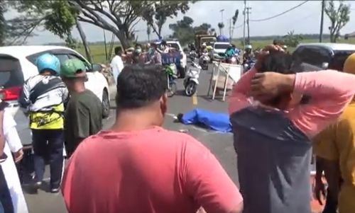Sesampainya di lokasi kejadian, mendadak pengendara sepeda motor terjatuh setelah gagal mendahului mobil Innova. Sepeda motor menyenggol bagian kanan belakang mobil. Korban terpental hingga ke lajur sebelah kanan. Nahasnya, bus datang dari arah berlawanan langsung menabraknya.