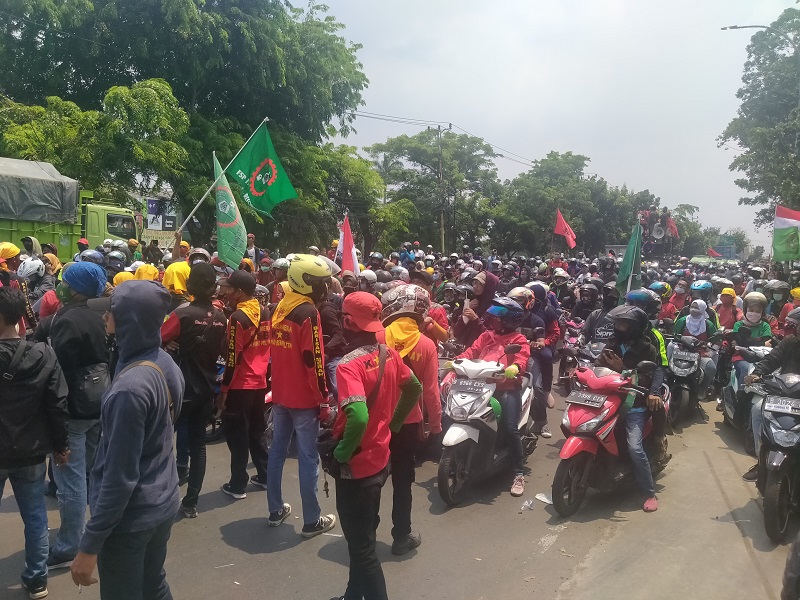 Tangerang: Ribuan buruh dari Aliansi Buruh Banten Bersatu (AB3) yang hendak ke Jakarta dipukul mundur di Jalan Daan Mogot, Batuceper, Kota Tangerang. Para buruh yang hendak menyampaikan penolakan pengesahan
