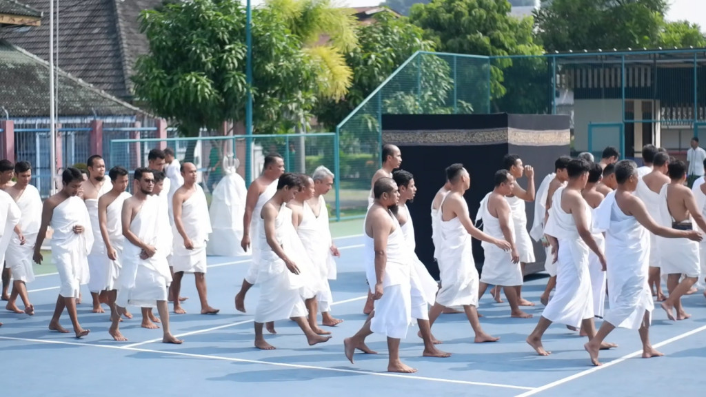 Yogyakarta: Warga Binaan Pemasyarakatan (WBP) di Lembaga Pemasyarakatan (Lapas) Kelas IIA Yogyakarta mengikuti Pelatihan Manasik Haji, Jumat, 14 Juni 2024. Kegiatan yang diikuti 70 orang tersebut untuk memberikan pemahaman keagamaan bagi para warga binaan.