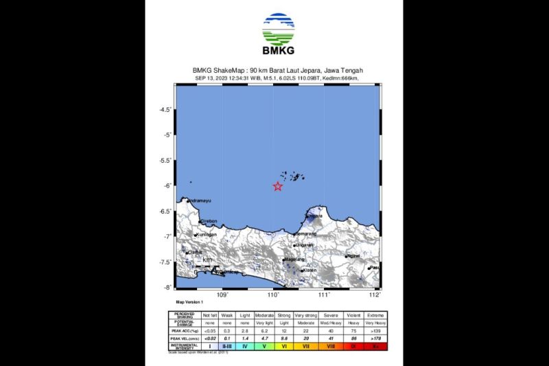 Jakarta: Badan Meteorologi, Klimatologi, dan Geofisika (BMKG) menyampaikan gempa bumi di wilayah utara Jawa Tengah, Laut Jawa