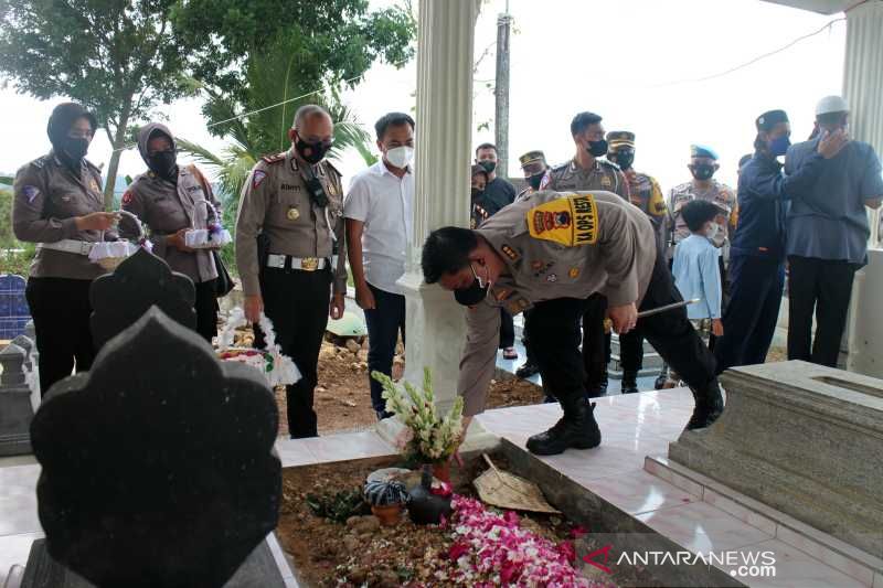 Kapolres Ade Safri Simanjutak yang didampingi keluarga korban juga melakukan ziarah dan tabur bunga di makam almarhum Gilang Endi Saputra, yang tidak jauh dari rumah korban.