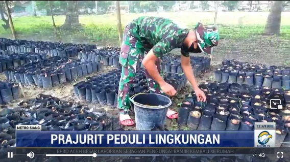 Aceh: Prajurit TNI di Korem 011/Lilawangsa, Lhokseumawe, Aceh, memanfaatkan lingkungan untuk kegiatan kreatif dan produktif di masa pandemi covid-19. Salah satunya, memanfaatkan lahan di sekitar asrama sebagai tempat pengembangan ribuan bibit dari berbagai jenis tanaman.