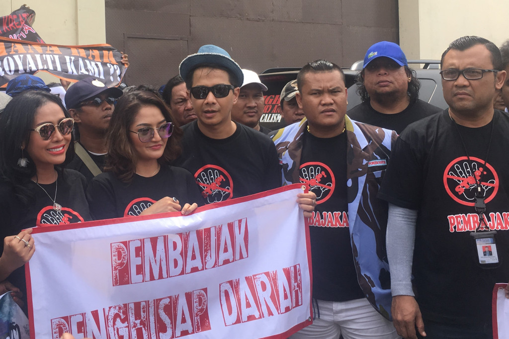 Sederet musisi seperti Delon,Siti Badriah, nampak hadir dalam aksi demonstrasi tersebut. Edy Lubis, juru bicara dari pendemo, dalam orasinya meminta kepada pihak perusahaan untuk menghentikan kegiatan pembajakan CD di pabrik. Pembajak dinilai sudah membunuh pendapatan para pekerja seni di tanah air.