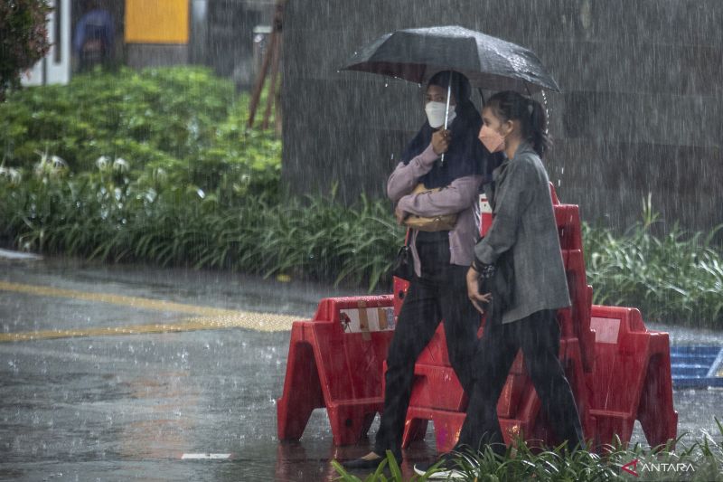 hujan ringan turun di sejumlah kota besar di Indonesia pada Kamis siang dan malam, 7 April 2022.