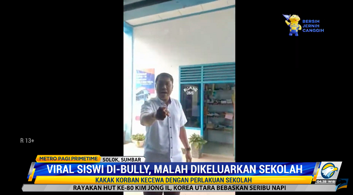 Solok: Viral video seorang kakak yang tidak terima adiknya dirundung di sekolah mendatangi sekolah sang adik di Kabupaten Solok, Sumatra Barat. Adiknya kemudian malah dikeluarkan dari sekolah. Ketegangan antara guru dan kakak siswa pun sempat terjadi.