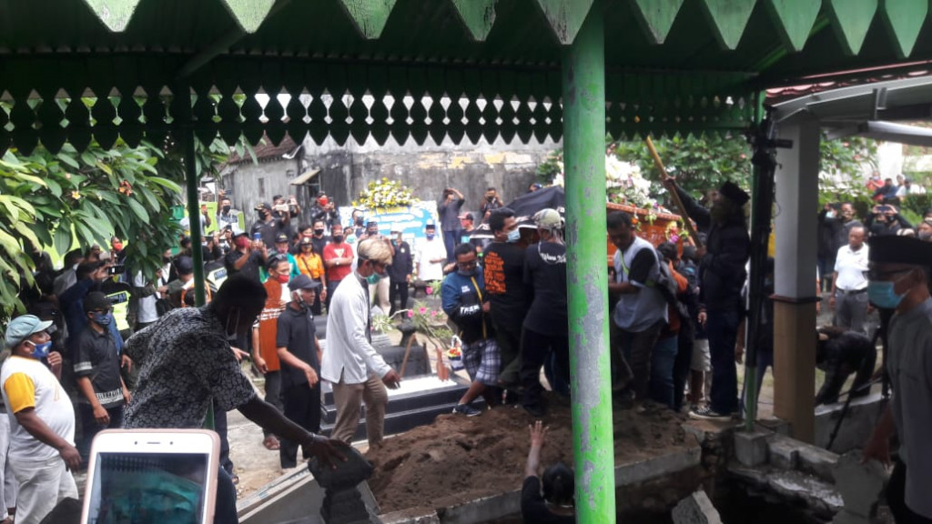 Ki Seno Nugroho dimakamkan di Tempat Pemakaman Umum (TPU) Semaki Gede, Umbulharjo, Kota Yogyakarta, Daerah Istimewa Yogyakarta (DIY), Rabu, 4 November 2020. Ia akan dikebumikan satu liang lahat dengan sang ayah, Ki Suparman.