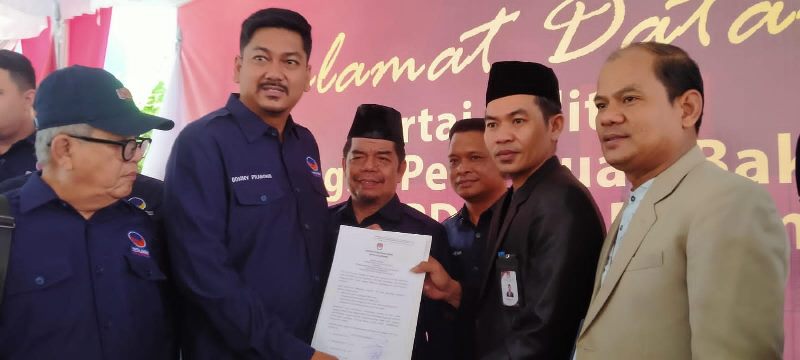 Palembang: Dewan Pimpinan Daerah (DPD) Partai NasDem Kota Palembang menyerahkan 50 daftar nama Bakal Calon Legislatif (Bacaleg) di Kantor Komisi Pemilihan Umum (KPU) Palembang, Jumat, 12 Mei 2023.