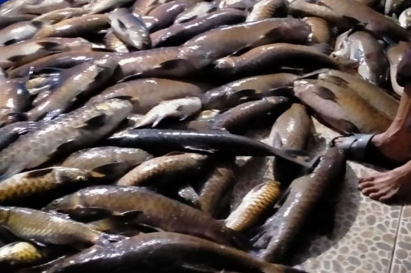 "Ikan yang mati langsung dikuburkan sedangkan ikan yang masih hidup dipindahkan ke tempat yang aman," katanya.