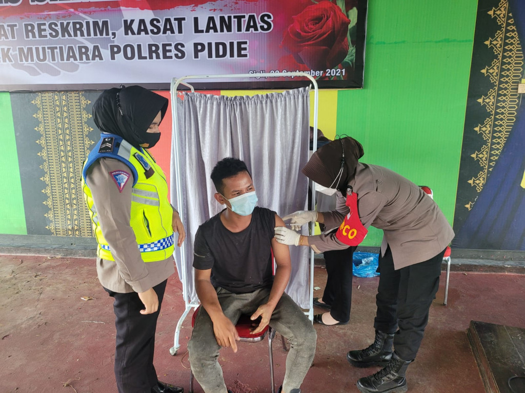 Kasat Lantas Polres Pidie, AKP Sandy Titah Nugraha mengatakan, kegiatan tersebut digelar untuk menciptakan Herd Immunity bagi masyarakat Kabupaten Pidie, Aceh.