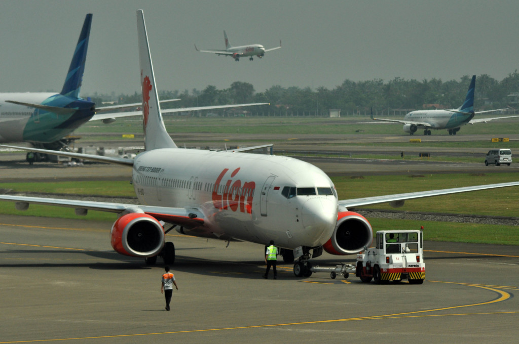 Pesawat Lion Air JT161 dari Singapura parkir di R51 Bandara Soekarno-Hatta, Selasa 10 Mei. Saat bersamaan, pesawat Lion Air yang mendarat dari Padang, parkir di R56.