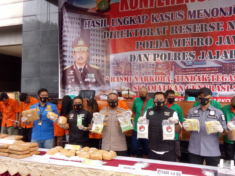"Sabu 21,2 kilogram, ganja 75 kilogram dan ekstasi 2.823 butir," kata Kabid Humas Polda Metro Jaya Kombes Yusri Yunus di Mapolda Metro Jaya, Jakarta Selatan, Kamis, 30 Juli 2020.