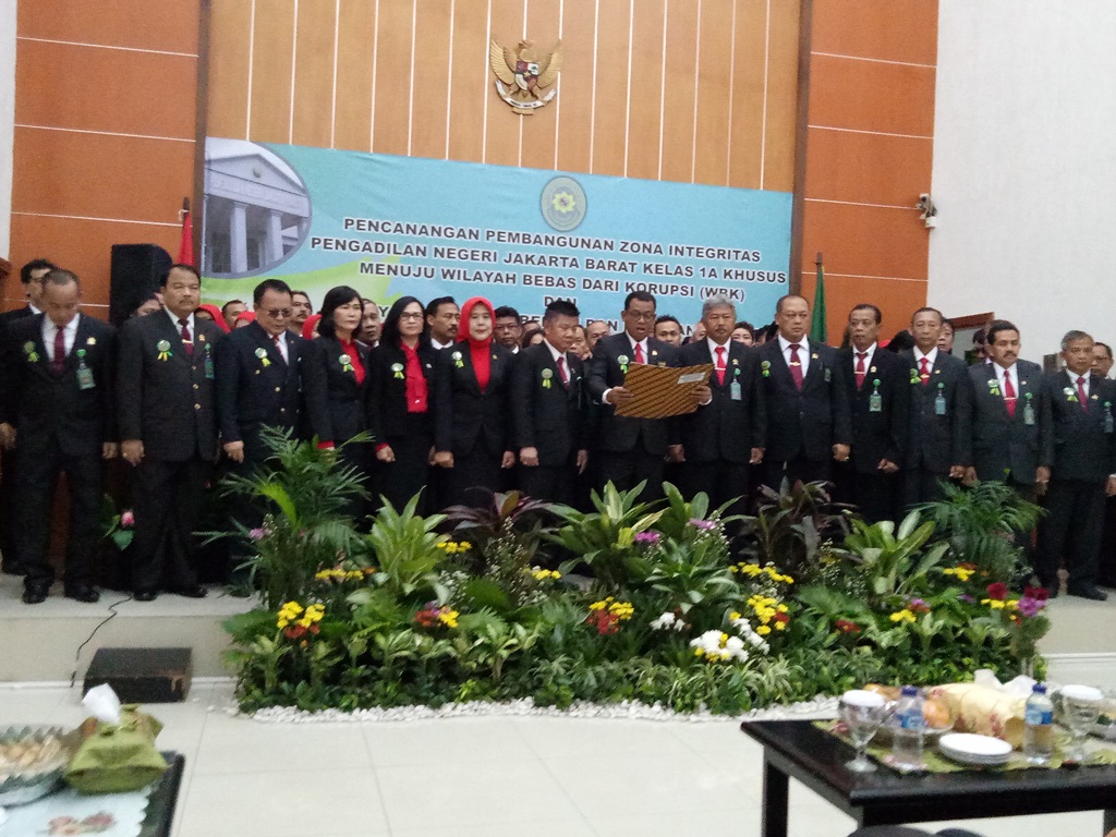 "Kami bertekad, berkomitmen, mewujudkan WBK dan WBBM di PN Jakarta Barat. Tujuan utamanya menghilangkan korupsi dan peningkatan pelayanan publik kepada masyarakat di PN Jakbar," ungkap dia.
