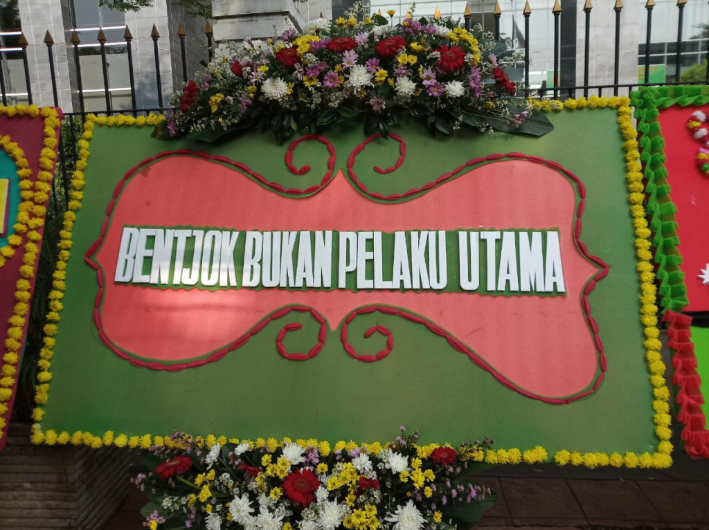 Karangan bunga lainnya bertuliskan 'Tuhan berkati Bentjok'. Kemudian, 'Bentjok bukan pelaku utama'. Boyamin menilai penempatan karangan bunga itu tidak etis dan tidak pada tempatnya.