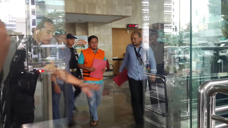 Sigit melangkahkan kaki dari Gedung KPK, Jalan HR Rasuna Said, Setiabudi, Jakarta Selatan, pukul 16.52 WIB, Minggu (16/10/2016). Pria yang menjabat sebagai kepala bidang pemasaran Disbudpar sudah mengenakan 'seragam' barunya, rompi berwarna oranye dengan tulisan "Tahanan KPK".