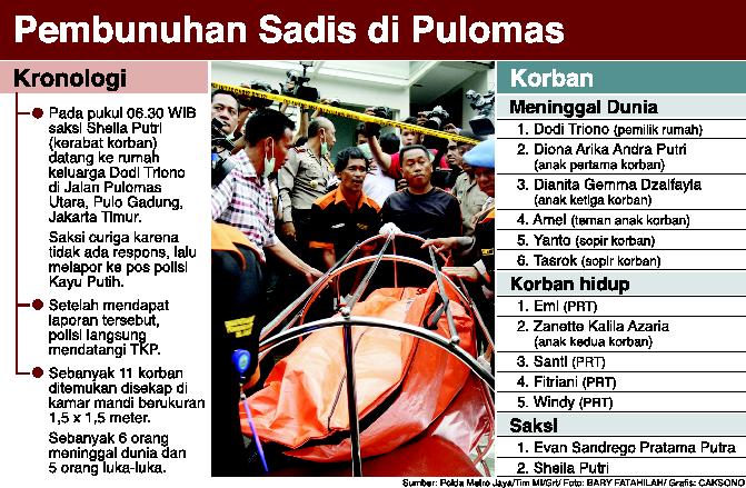 medcom.id, Jakarta: Berkas perkara pembunuhan sadis di Pulomas dinyatakan lengkap atau P21 dan dilimpahkan Kejaksaan Negeri (Kejari) Jakarta Timur. Tiga pelaku dijerat pasal pembunuhan berencana.