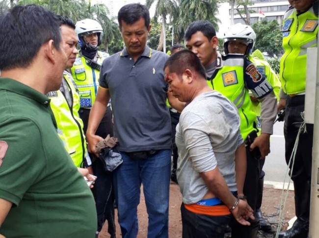Jakarta: Fahruzi Lubis, pelaku yang mengacungkan pisau di Sudirman sempat mengaku cucu Nabi Muhammad. Saat ini Fahruzi sudah dibawa ke Polsek Metro Setiabudi.