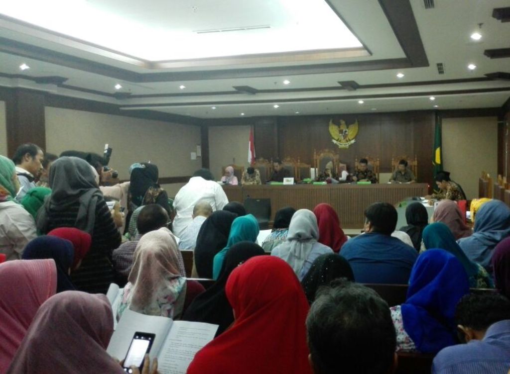 Metrotvnews.com di ruang sidang, para calon jemaah berbondong-bondong memasuki ruang sidang. Jemaah juga terlihat berebutan mengambil lembaran nota perjanjian yang berisikan 10 lembar.