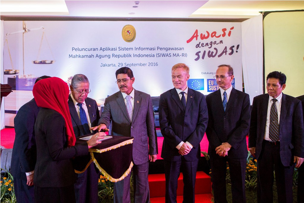 SIWAS mendapatkan dukungan penuh dari Uni Eropa dan UNDP, melalui Proyek Dukungan Reformasi Peradilan di Indonesia (SUSTAIN). SUSTAIN, yang didanai oleh Uni Eropa ini memiliki empat fokus utama: pengawasan internal dan eksternal; pelatihan hakim, panitera dan juru sita; manajemen sumber daya manusia; dan sistem manajemen perkara.