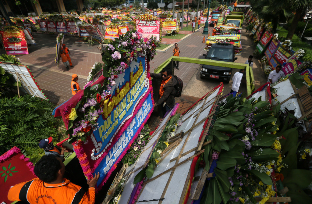Kini karangan bunga tak hanya ditunjukkan bagi Gubernur dan Wakil Gubernur DKI Jakarta, Basuki `Ahok` Tjahaja Purnama dan Djarot Saiful Hidayat, sebagai bentuk dukungan karena kalah di Pilkada DKI 2017. Karangan bunga juga, yang berisi pesan menjaga keutuhan NKRI, dikirim untuk Istana Negara, TNI, dan Polri.