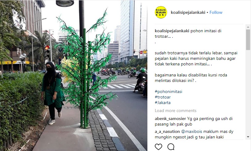 Nyatanya, saran dari urban planner Koalisi Pejalan Kaki tak dipakai. Pemprov dituding menebang tanpa membuka ruang untuk menerima saran.
