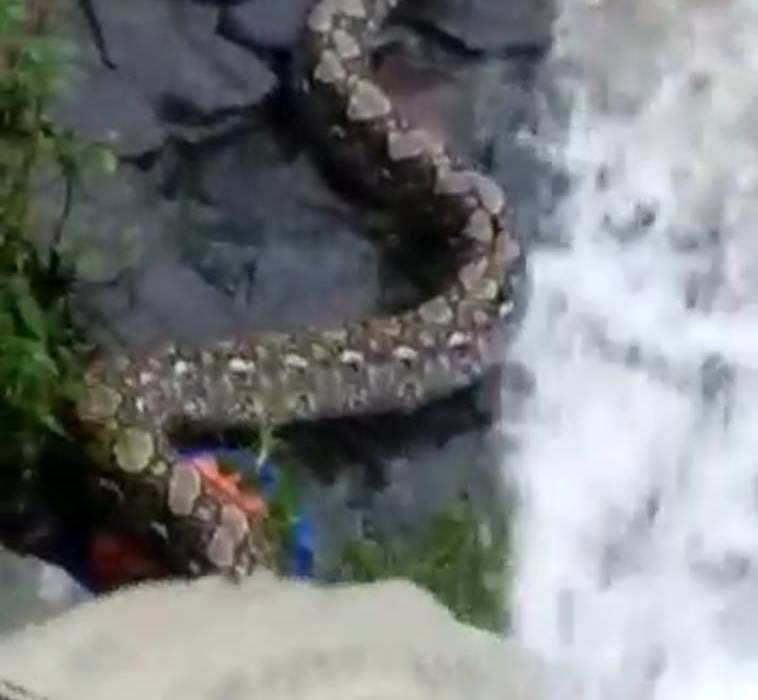 @info_jakartapusat, ular itu tengah meliuk-liuk di bebatuan dan ditonton warga setempat.