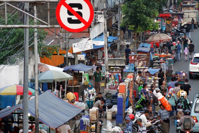 Di sisi jalan lainnya, trotoar diokupasi pedagang handphone bekas juga pedagang makanan.