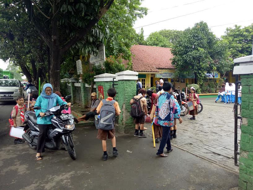 Sejumlah orang tua menunggu anak mereka di depan SDN Cilandak Timur 01, Jumat (14/10/2016). Foto: MTVN/Arga Sumantri