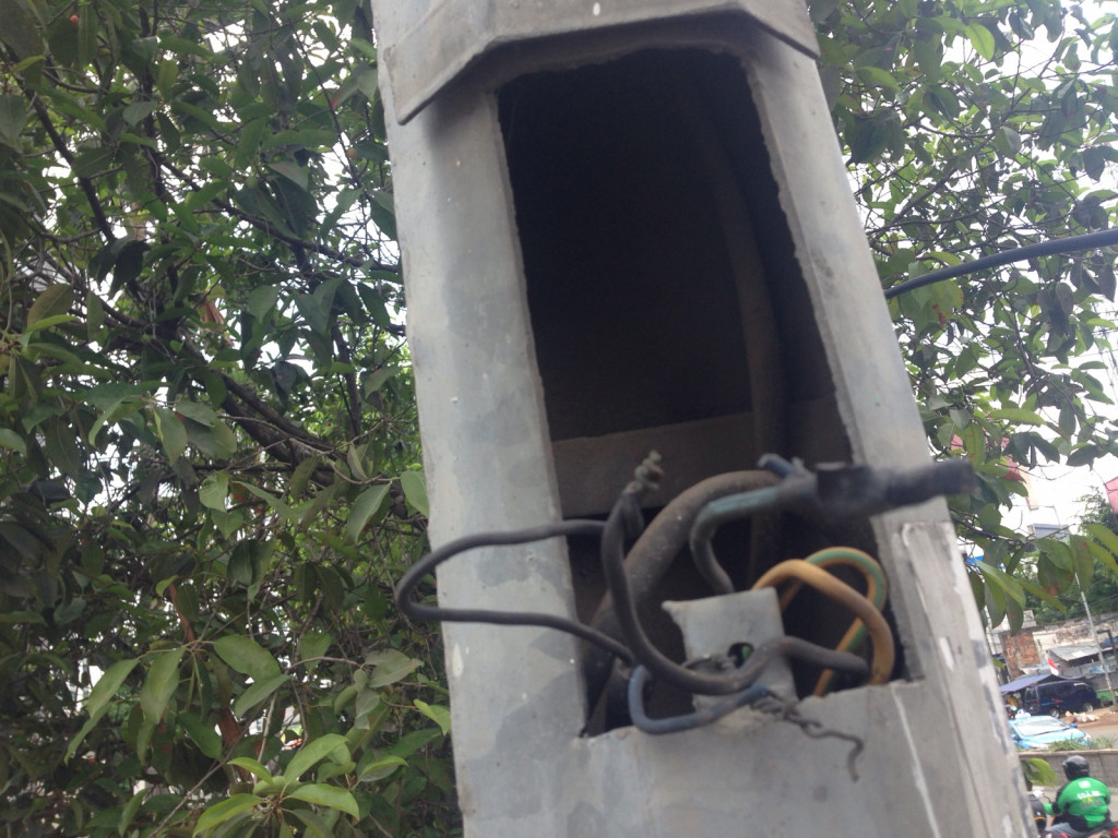 Tak hanya itu, kotak sekering pada tiang lampu PJU di JPO Jalan KH Mas Masyur, Tanah Abang, Jakarta Pusat, dibiarkan terbuka. Lilitan kabel tanpa selotip keluar dari kotak sekering.