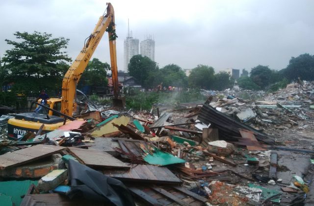Pantauan Metrotvnews.com, sekitar pukul 07.30 WIB, alat berat merobohkan warung-warung di pinggir Jalan Tubagus Angke, Jakarta Barat. Disusul deretan kafe-kafe di sepanjang Jalan Kepanduan II, Jakarta Utara.