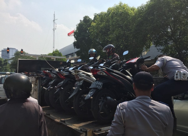 Medcom.id, 20 petugas Sudinhub Jakarta Pusat dikerahkan. Sementara 10 motor tersebut diangkut dengan dua truk bak terbuka. Motor tersebut dibawa ke kantor pusat Sudinhub di kawasan Senen, Jakarta Pusat.