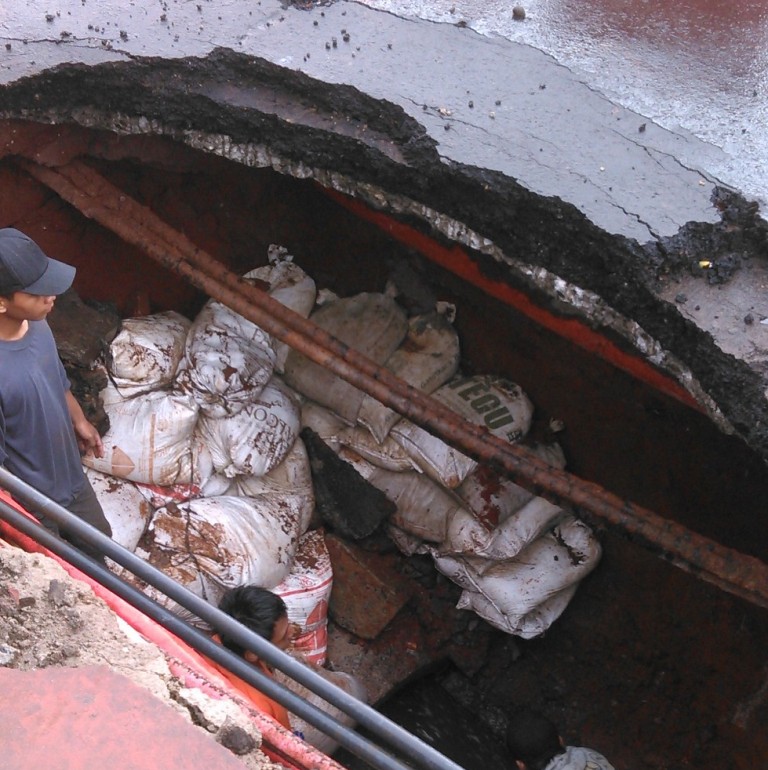 Lubang menganga di jalan protokol itu, saat berita ini disusun, sudah mulai dibenahi oleh Dinas Pekerjaan Umum DKI Jakarta. Sekeliling lubang besar itu dipagari seng agar tak bisa dilintasi pejalan kaki maupun kendaraan.