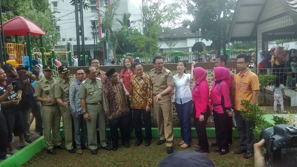 medcom.id, Jakarta: Gubernur DKI Jakarta Basuki Tjahaja Purnama atau Ahok meresmikan Ruang Publik Terpadu Ramah Anak (RPTRA) Bintaro, Jalan Bintaro Permai III, Pesanggrahan, Jakarta Selatan. Dana pembangunan RPTRA seluas 550 meter persegi ini bersumber dari