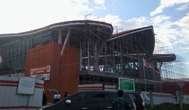Dari luar, atap dan fondasi bangunan integrated building sudah berdiri. Walaupun, masih disangga tiang.