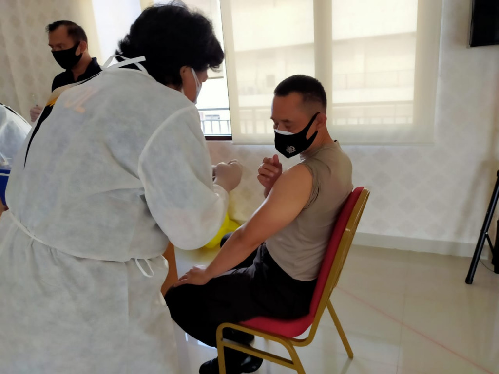 Vaksinasi covid-19 polisi di Jakarta Pusat, Senin, 8 Maret 2021. Foto: Medcom.id/Christian