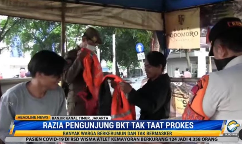 “Mengadakan pengawasan pengendalian protokol kesehatan di wilayah BKT. jadi yang melanggar kami tindak,” ujar Pengendali Satpol PP Jakarta Timur, Sularna dalam program