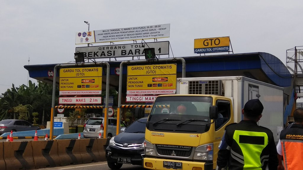 Kendaraan pribadi dan truk akan dibatasi dengan aturan ganjil-genap di akses Gerbang Tol (GT) Bekasi Barat dan Bekasi Timur. Pembatasan ini berlaku Senin-Jumat mulai pukul 06.00 hingga 09.00 WIB.