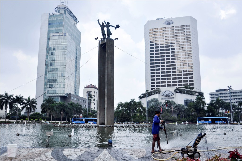 Ilustrasi--Para pekerja saat membersihkan lumut yang menempel di lantai kolam Bundaran HI, Jakarta, Selasa (24/5)--MI/Galih Pradipta.
