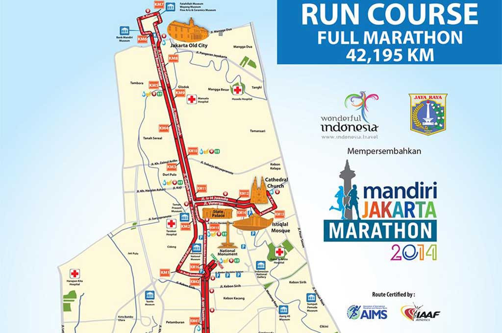 Rangkaian acara Jakarta Marathon telah dimulai pukul 05.00 WIB dengan titik start dan finish di Monas. Panitia menyiapkan beberapa alternatif tempat parkir yang disediakan yakni Masjid Istiqlal, kantor Kementerian BUMN, gedung Pertamina dan stasiun Gambir yang sudah dibuka sejak pukul 02.00 WIB.