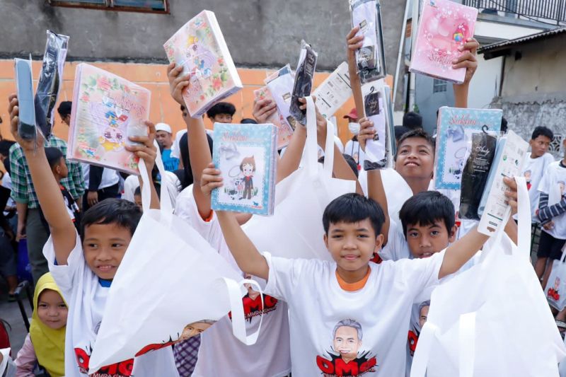 Jakarta: Anak muda, mahasiswa, dan milenial yang tergabung dalam Orang Muda Ganjar (OMG) DKI Jakarta membagi-bagikan paket peralatan sekolah berupa buku, alat tulis, kaos kaki, dan pensil warna kepada pelajar dari keluarga kurang mampu. OMG DKI Jakarta berupaya mengimplementasikan contoh kepedulian Ganjar Pranowo di sektor pendidikan.