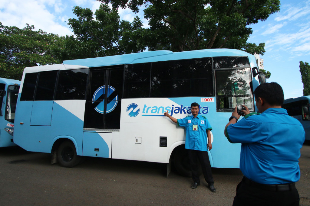 Petugas menyiapkan Kopaja AC terintegrasi busway, Selasa 22 Desember 2015. Foto: MI/Galih Pradipta