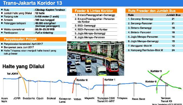 medcom.id, Jakarta: TransJakarta Koridor 13 sukses mengubah pola transportasi sejumlah warga yang tadinya menggunakan kendaraan pribadi pindah ke angkutan umum. Tarif murah, ketepatan waktu dan konsep layang membuat warga rela meninggalkan mobil pribadinya.
