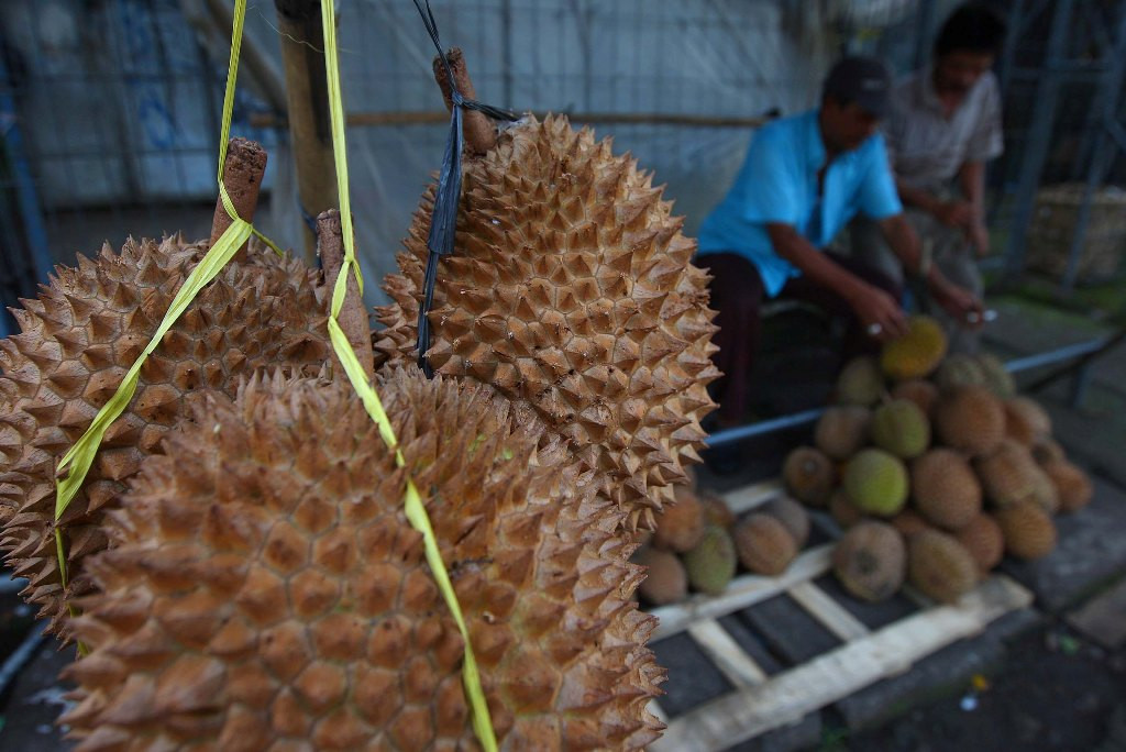 Tidak ada lagi buah durian yang dipajang para pedagang. Puluhan pedagang justru merapikan lapak masing-masing.
