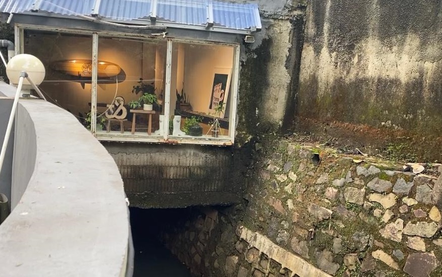 Bangunan yang berdiri di atas saluran air diduga lebih dari satu. Sebab, di samping pintu masuk kafe terlihat pula menempel sejumlah bangunan lainnya. Saluran air yang mengalir di bawah bangunan memiliki lebar hampir dua meter.