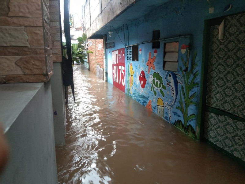 Jakarta: Rumah Ketua Wadah Pegawai Komisi Pemberantasan Korupsi (WP KPK) Yudi Purnomo Harahap yang berada di rukun tetangga (RT) 05 rukun warga (RW) 09, Kelurahan Kebon Pala, Kecamatan Makassar, Jakarta Timur, dilanda